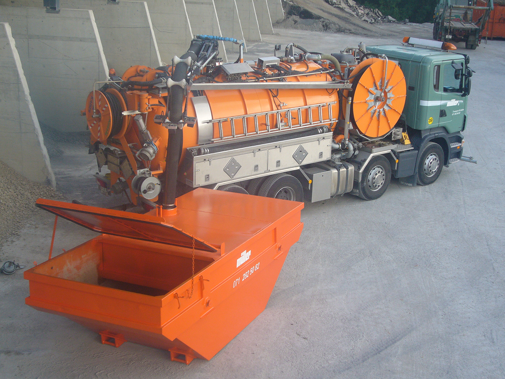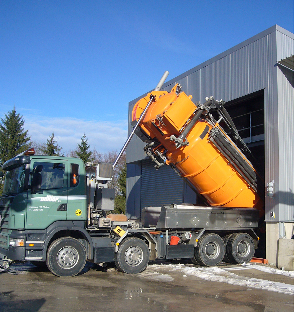 Abholung des Bohrschlamms mit Spezialfahrzeugen