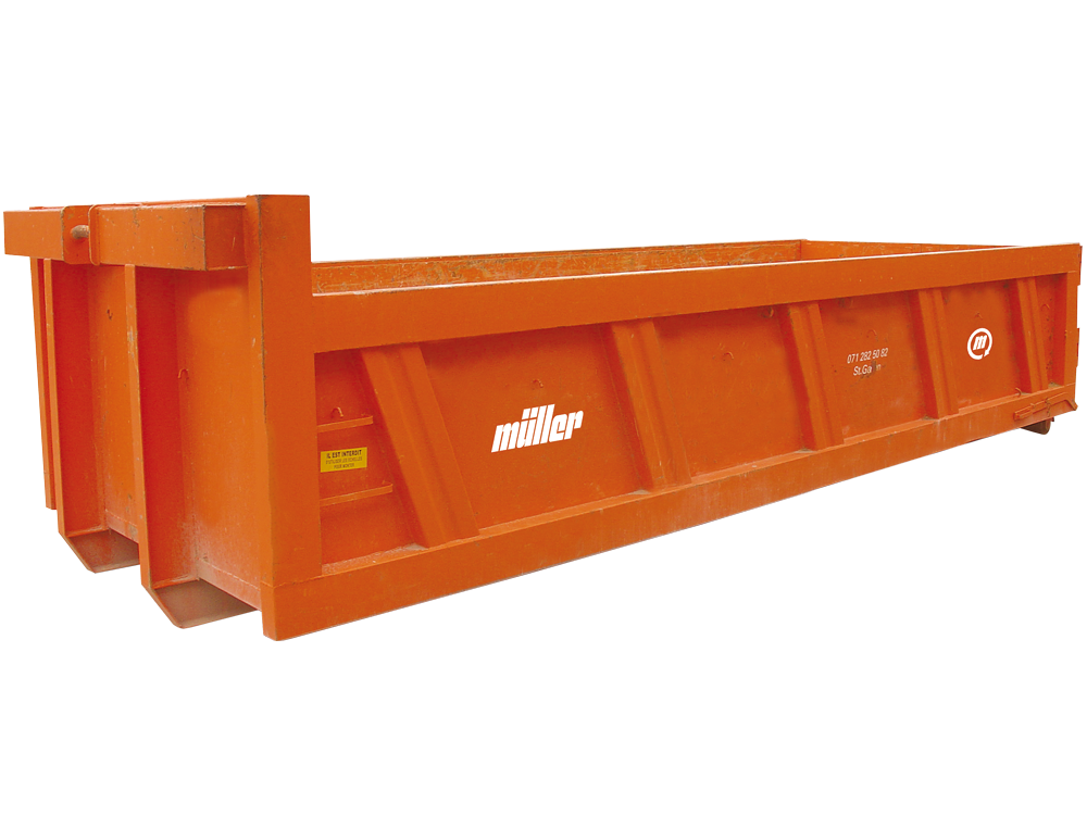 Bitte überfüllen Sie die Mulde nicht – sie kann sonst nicht mehr aufgezogen werden. Vor dem Transport müssen sämtliche Mulden mit einer geeigneten Plane oder einem Netz abgedeckt werden.